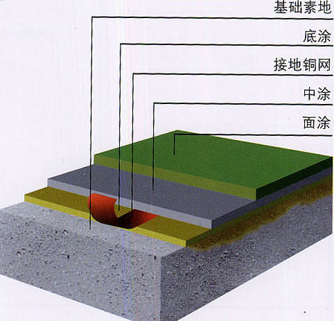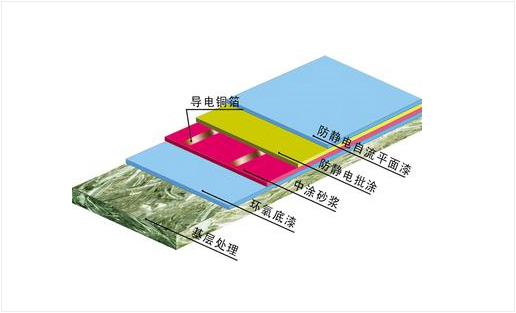 a.防静电底漆:采用渗透性及附着力特强防静电环氧底漆滚涂一道,增强表面附着力;